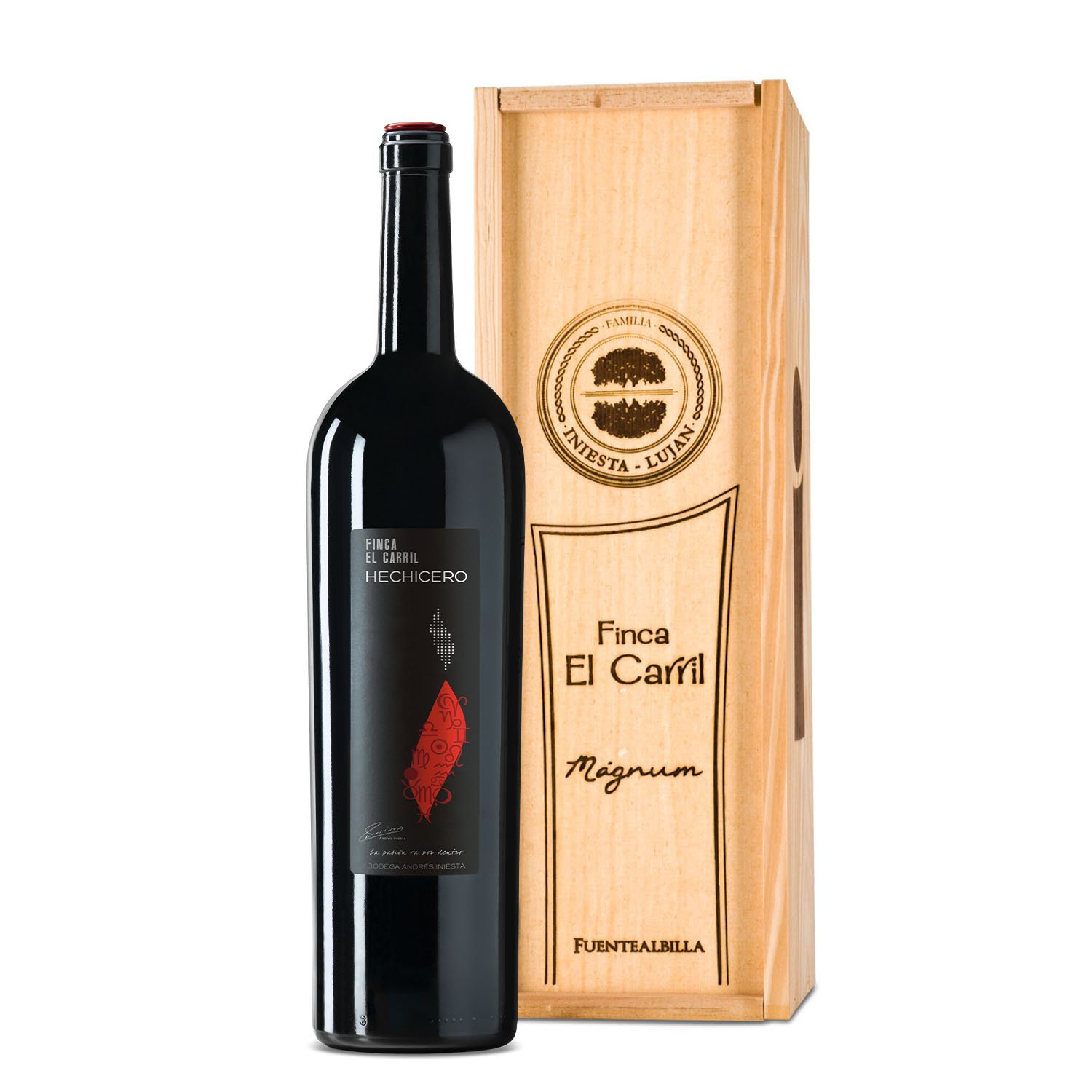 • El pack incluye una botella de 1,5 litros de Finca El Carril Hechicero, sellada con lacre y en estuche de madera de Finca el Carril.